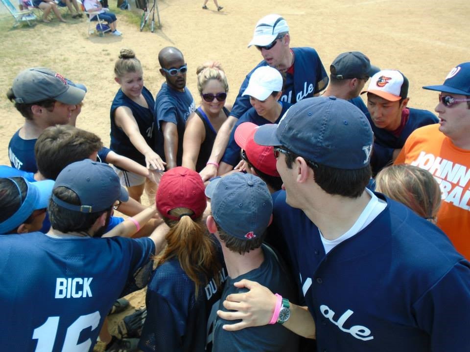 Yale alumni in the Washington, D.C. area participate in several recreational sports leagues as part of the Capital Alumni Network (CAN). CAN is working on its comeback from its pandemic hiatus restarting co-ed softball and its October annual golf tournament in 2022. CAN previously had basketball, flag football, soccer, and volleyball leagues, and we hope they will relaunch those sports soon. We encourage alumni to join and play, or at least come cheer us on as we take on alumni squads from over 70 other colleges! For more information on CAN, contact the Yale Club of DC member Sted Garber. If you're interested in basketball, please contact Tsega Bekele who is maintaining a roster of interested Yalie's for when CAN relaunches basketball. To comply with league rules, teams generally must be made up of at least 60% alumni, and no more than one former varsity player at a time. SoftballThe Softball season runs from April to August. For more information, contact captains: Sted Garber and Nahyun Cho. Go Bulldogs!!